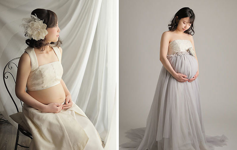 『ラグニティ』とは…「ラグジュアリー」+「マタニティ」の造語で、ドレスをアレンジした高級で上質なマタニティ衣装のことです。