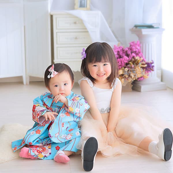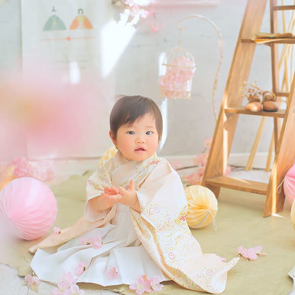 | 土日祝+¥3,300 | お子さまひとりとご家族でいろいろお撮りします 衣装2着まで (当店衣装またはご自前) 撮影1時間 ※対象年齢18才まで |