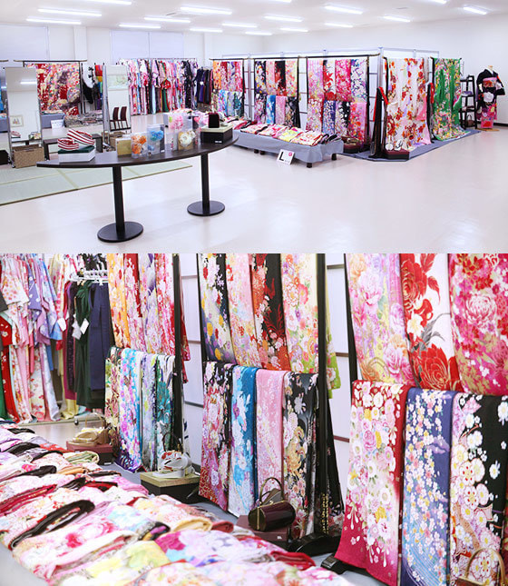 大手呉服問屋タイアップの新作振袖はもちろん、リーズナブルなお仕立て上がり振袖を展示します。