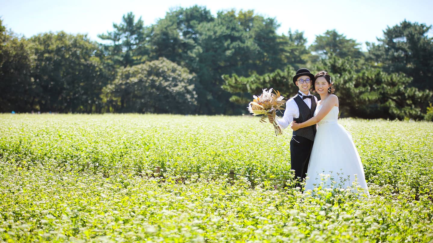撮影当日にエンゲージメントフォト(入籍フォト)として結婚報告にも使えるカジュアルな写真をお撮りしてプレゼントします