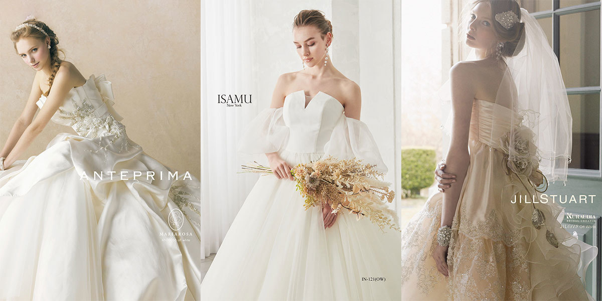 人気のハツコエンドウやイサムモリタのドレスが着られるお得パックが平日の撮影ならさらに割引になります!