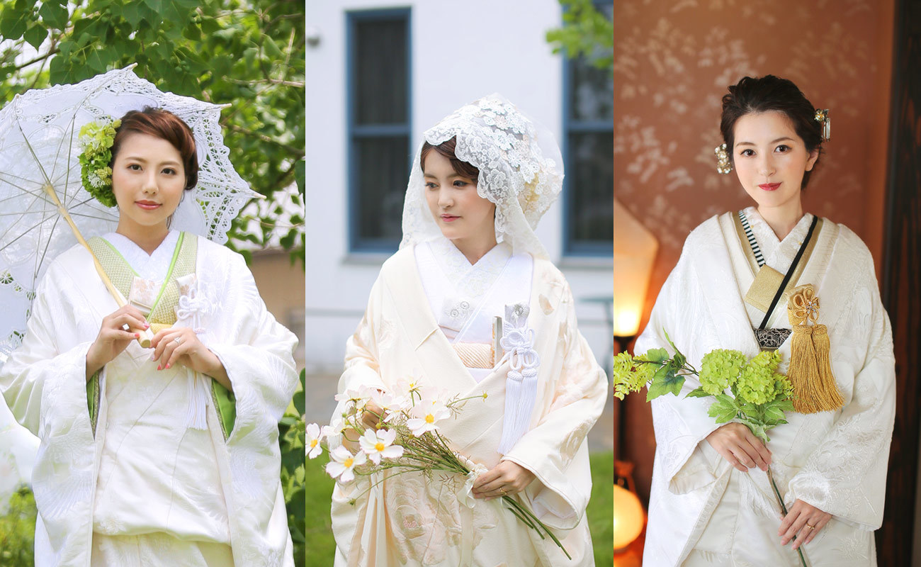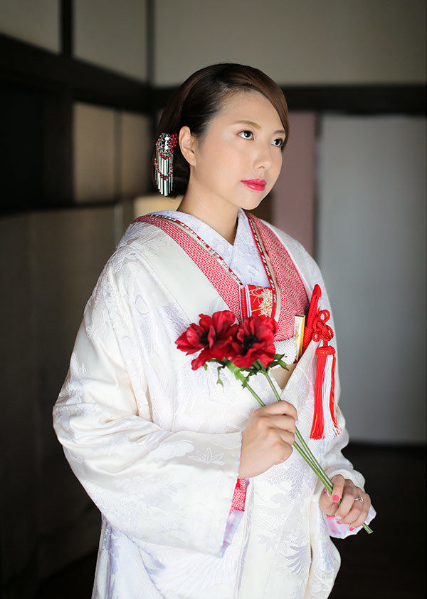 花嫁の着物は、重ね衿やはこせこなどの小物コーディネートによって、イメージががらりと変ります。同じ着物でもコーディネートによって優しいイメージになったり、シャープでモダンな印象になったり。