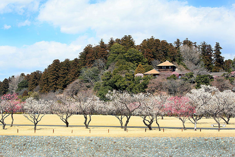 金沢の兼六園・岡山の後楽園とともに日本三名園のひとつに数えられる日本庭園で、梅の名所として全国的に知られています。