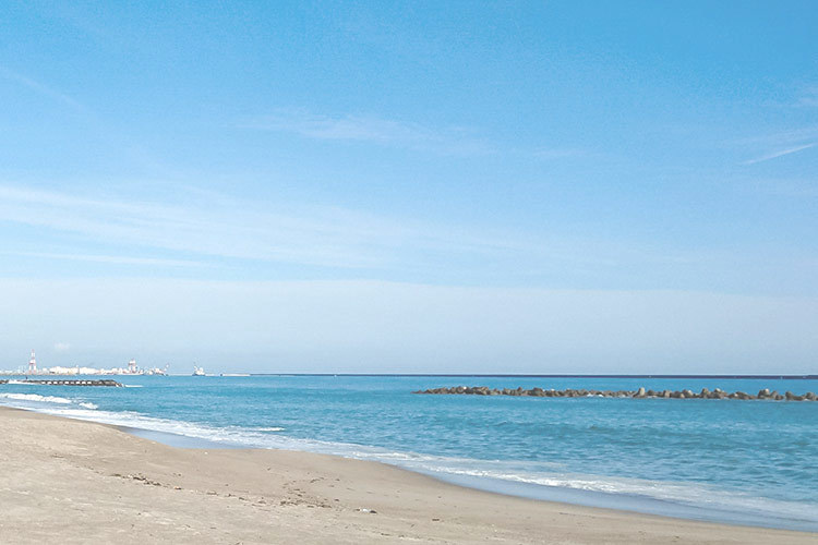ひたちなか市にある海水浴場で、約1.2キロメートルに渡って弧を描く海岸線が美しく、かつては「東洋のナポリ」と称されていました。