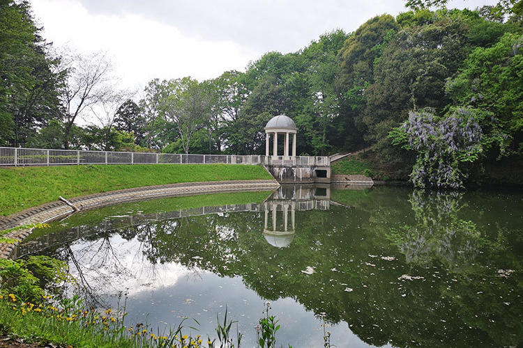 総面積15.8haの広大な敷地には、風景画のように美しい景色が広がり、ところどころに中世ヨーロッパのような橋や門、パビリオンが配されています。