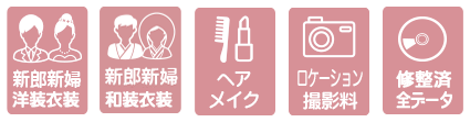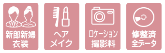 【内容】新郎新婦プラン内和装または洋装各2点・ヘアメイク着付・ロケーション撮影料・修整済みデータ240カット