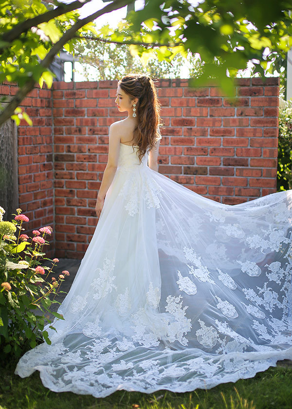 自分の好きなドレスを好きなように選べるのがソロウェディングの醍醐味。ジルスチュアートやM / mika ninagawaなど人気ブランドのものも含めて、ドレスショップのたくさんのドレスからお好きなものをお選びいただけます。(ブランドドレスはオプション料金)